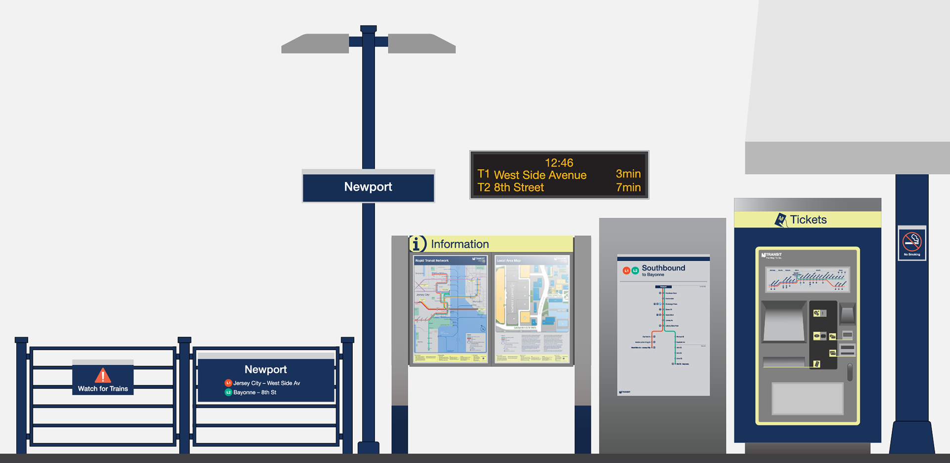 The Hudson-Bergen Light Rail deserves a wayfinding system as essential as the service itself. This project resolves existing failures and establishes a clear, accessible language for navigation across rider experience.
